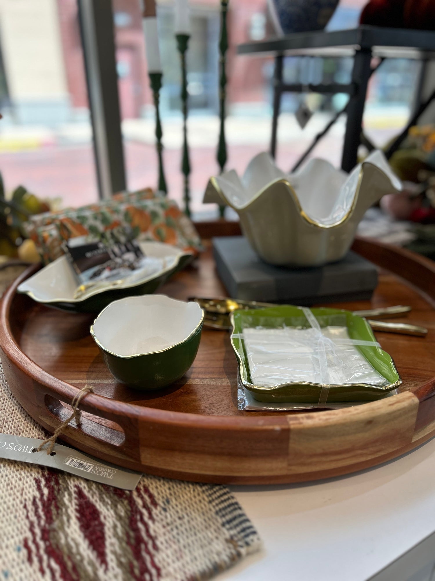 Explore our curated selection featuring beloved brands like Tribal, Habitat, Fenini, Cut Loose, Shana, Mud Pie, Creative Coop, K&K Interiors, Dash & Albert, Two's Company, Happy Everything, Nora Fleming, Trapp candles, Voluspa candles, Capri Blue candles, Tyler candles, Enewton, and Jellycat.