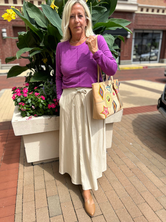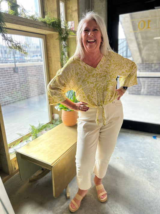 Tribal Sophia Curvy Micro Flare Crop Ecru