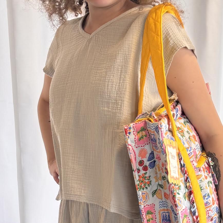 Made of 100% Cotton. Effortless and easy to wear, the Escape Dune Gauze V Neck is your go-to for laid back comfort. Made from soft, breathable gauze cotton, this lightweight top features a flattering v neckline, relaxed fit, and subtle texture. Perfect for pairing with the matching flood pants or your favorite denim.