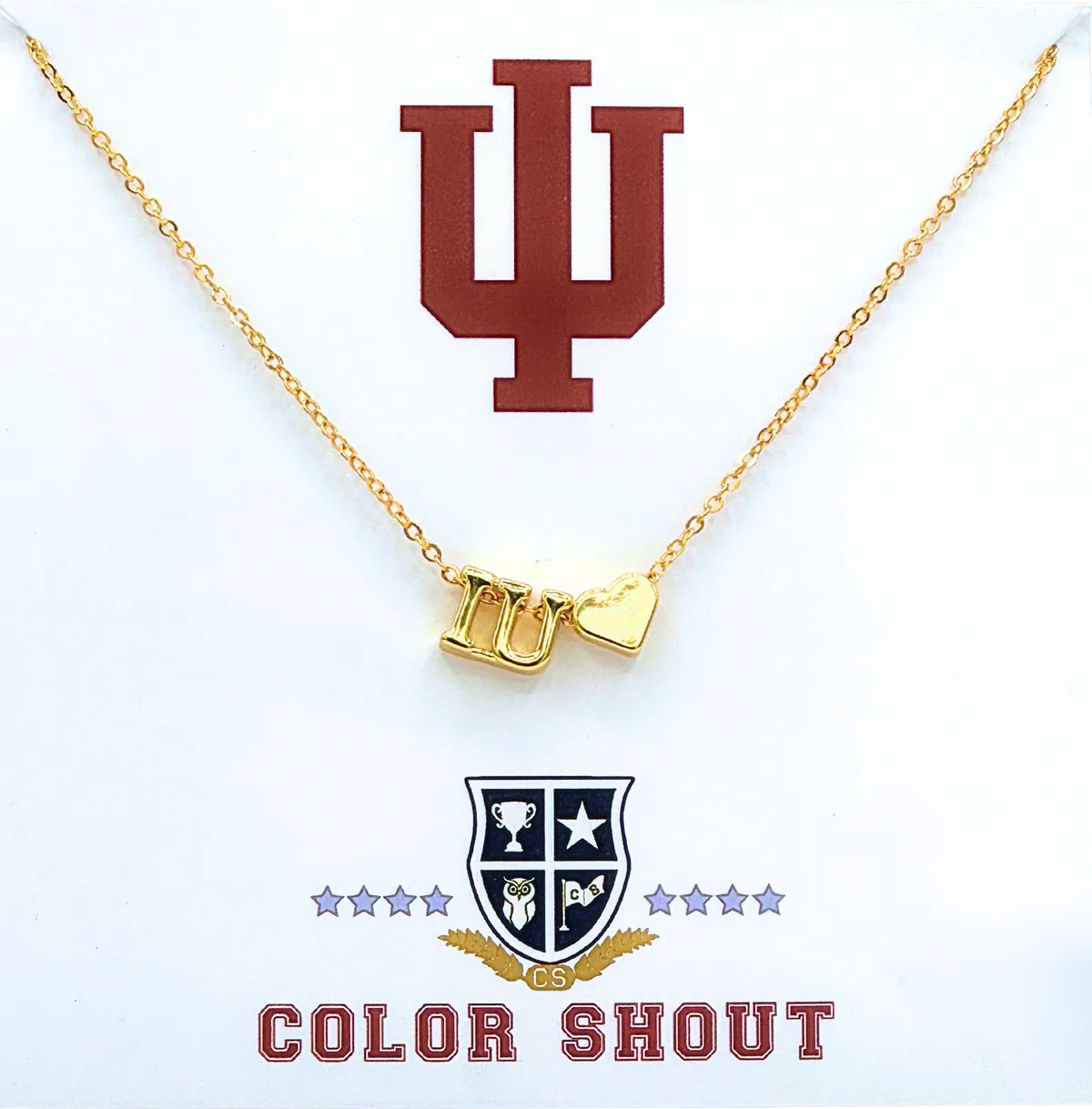 Heart necklace - with gold 'IU" and a gold heart, plated in stainless steel 18k yellow gold. Adjustable 16-18 inches. Lobster Claw closure.