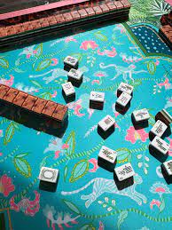 Go wild for the Serengeti Mat, a stunning collaboration with Fort Worth-based fashion designer Sheridan French. Inspired by the jungle's playful spirit and rich beauty, this mat features a lush palette of aqua, coral, and tropical greens, brought to life with cheeky monkeys, striped zebras, and vivid jungle foliage. Designed to pair beautifully with the Glow Wild Tiles (but versatile enough to match many of our sets), the Serengeti Mat brings a sense of adventure, color, and charm to every game.