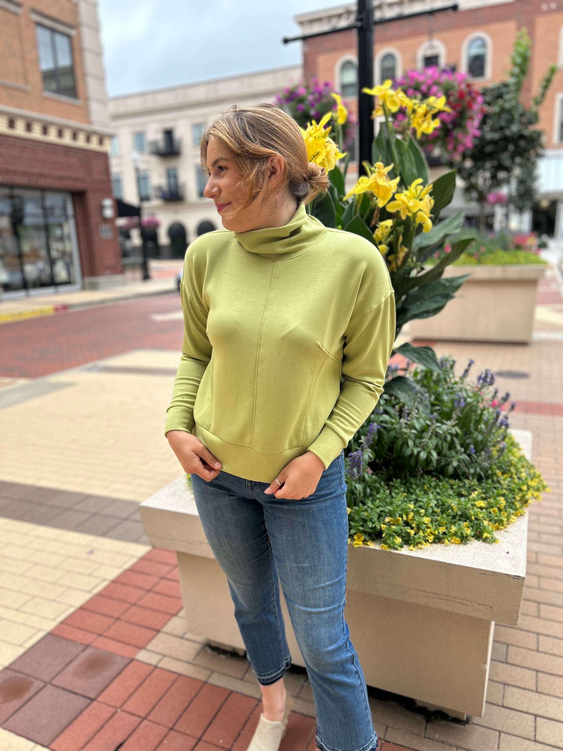 The funnel neckline adds a modern, refined touch while offering gentle warmth and coverage—perfect for transitional layering or standing out on its own. With a slim yet comfortable fit, it flatters without clinging and pairs effortlessly with everything from tailored pants to relaxed denim.
