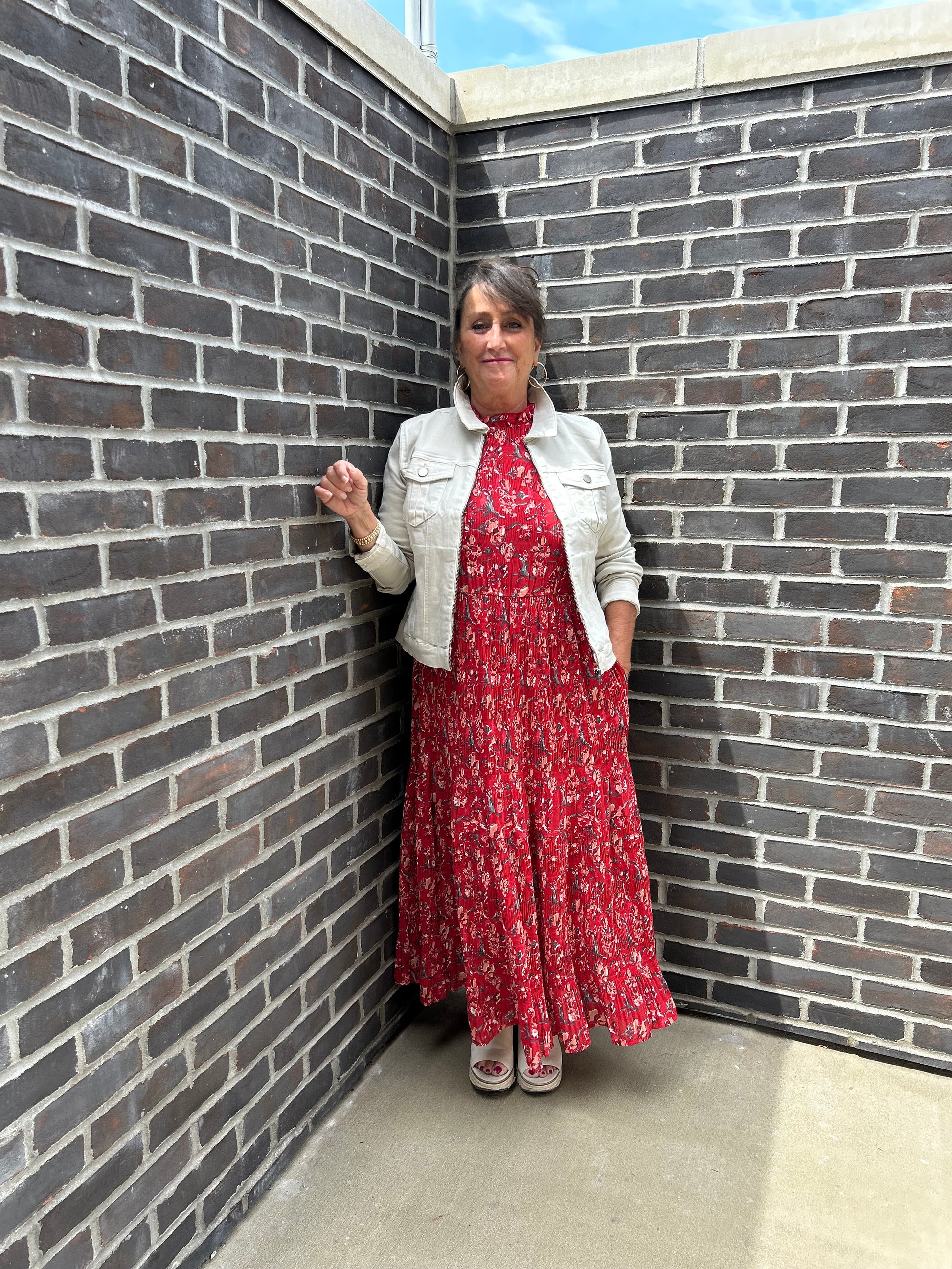 Great addition to your wardrobe. Stretchy denim-like jacket. Pearl color.